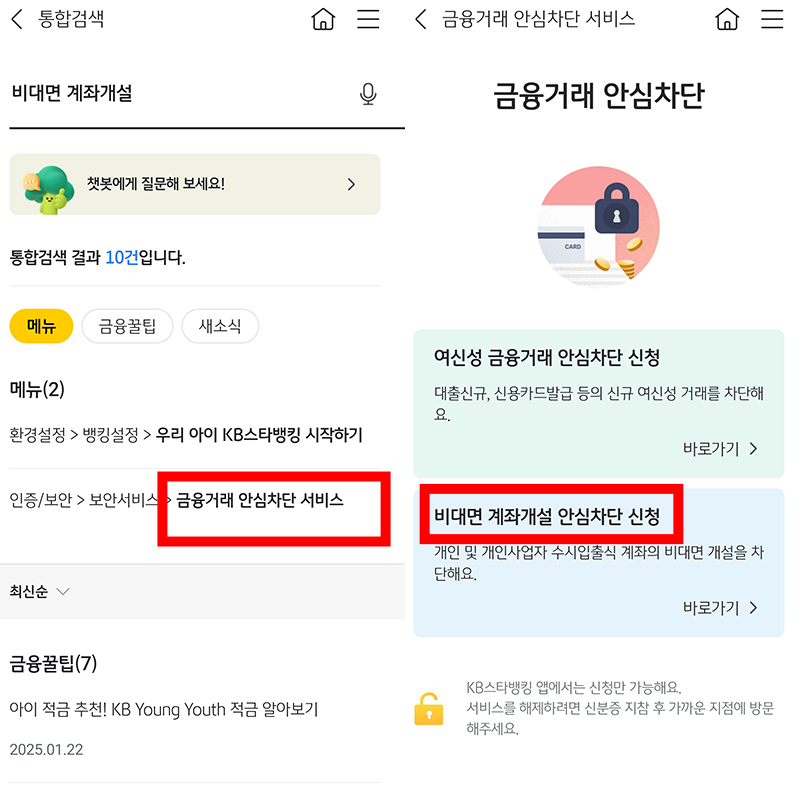 비대면 계좌개설 안심 차단, 어떻게 신청하나요?